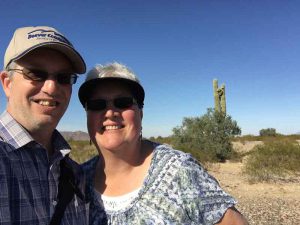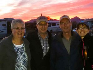 A hearty breakfast was served this morning – eggs, potatoes, pancakes, bacon, and coffee. A great way to start the day. We went on a long walk in search of Roadrunners to take pictures of, but of course now that Laurie had a camera ready they were nowhere to be seen! We went to an ice cream social in the afternoon where they had ice cream sundaes. We explored some of the new RV’s on display and saw a Holiday Rambler Endeavor that we really liked. Tonight we met Tom and Linda Binder for dinner. They are friends we made at the Beaver rally in Quartzsite, AZ. At their suggestion we went to El Charro Café in downtown Tucson. The food was delicious and it was a cute setting in an old house. We had some wonderful conversation and parted with hopes that our travels will take us to PA or their travels will take them to WA. For now it will be emails, texts, and Facebook.