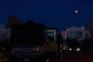 The lighting made the moon look very three dimensional and foreign hanging in the dark sky. Laurie waxed half the RV and Pat investigated port activities for future cruises. Every day we spend some time reading, on computers, and watching Fringe.