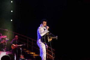 We grabbed coffee and quickly ate donuts then we were off to Home Depot and Walmart. We visited a couple of vendors at the show, then we did our volunteer security 11-2 manning a gate making sure that only people with badges came onto the fairgrounds. It was 80 degrees out and sunny but someone brought us some ice cream around noon. We decided to give In-n-Out Burger a try for dinner since the pot luck tonight was leftovers and snacks. The place was extremely busy inside and at the drive-up and it was only 4:00! They have a very limited menu of burgers, fries, milkshakes, and beverages. Despite the long lines it only took about 15 minutes to get our food. There was a large, fast-moving staff in the kitchen with each person assigned a specific task. The burgers were yummy but the fries were average. Every eat-in seat was filled. Two cheeseburgers and two generous orders of fries ran $9.90. Tonight’s entertainment was Raymond Michael, an Elvis tribute performer. His voice was wonderful, sounded a lot like Elvis, and he sang many outstanding songs – although is movements could use some work. In between songs he gave some background information about the songs and other interesting Elvis tidbits rather than staying in character as Elvis. This performance ended the rally. They said that almost 900 RV’s attended.