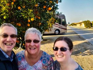 The past few days were spent settling in and establishing a routine. We spend our mornings and early afternoons doing our own thing, then join up with Mom and Dad late afternoon to visit and have dinner together. Sometimes we eat at the RV and sometimes at their cottage. Some of the items we’ve accomplished have been washing the RV, outdoor window shades, some RV screens, and the car. Laurie also waxed the RV, and Pat cleaned some blinds. We did a large Walmart pickup for our initial stock up, and next week we’ll finish stocking up with a trip to Costco. The daytime temperature tends to be around 70 with mixed sun and clouds. Very pleasant. One night it unexpectedly rained for a short time. Of course this was the night after we had just washed the RV! There are a few hummingbirds zipping around our RV like tiny rockets on a regular basis. So fast and cute when they hover in place or land on a tree branch momentarily. Nicole and Daniel surprised us by organizing Hanukkah candle lighting online. It was wonderful to celebrate together and to see the kids!