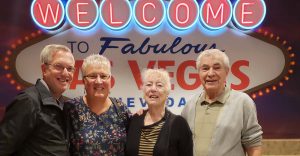 M&D got a surprise video phone call from Syd, Yvonne, and Ann in Sydney, Australia while we were at their cottage for dinner. Everyone looked great and they had a long, lively conversation. We hope to visit them in Spring 2022. It’s been sunny, a little bit cooler (low-mid 60’s), but often windy. This kept us off the shuffleboard courts as the tiny wax beads we shake on the courts blows off when it’s too windy and then the discs don’t slide. The RV tends to block the blowing wind on the patio/southside so we still can enjoy relaxing in the sun. New Year’s Eve was like any other day except we watched a movie, “3:10 to Yuma”, which we had seen a long time ago but was well worth seeing again. Of course we celebrated Mom’s birthday on the 1st. After the wind let up some in the afternoon we were able to get in a shuffleboard game. The “Guys” won this one. This was followed by happy hour in the sunshine on our patio, a shrimp scampi-pasta-asparagus dinner, and watching the movie “Jojo Rabbit” which was very good. We wrapped up the day by having a caramel pecan birthday cheesecake and presenting Mom with her annual calendars.
