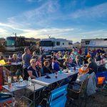 The weather has warmed up again and we even hit 80 degrees! The days are mostly sunny with some clouds later in the day that provide some glorious sunsets. Weirdly, a very light, very brief shower occasionally passes through (mainly at night) despite the precipitation forecast being only 1-2% chance of rain. We played a couple games of shuffleboard one afternoon with the “Guys” and “Dolls” each winning one game.